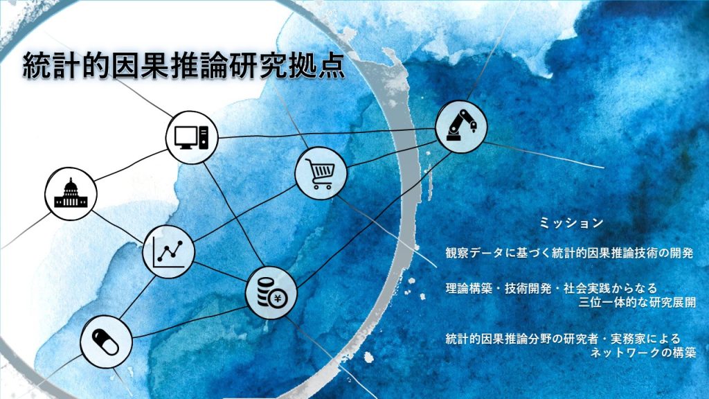 本研究拠点の目的は,工学,情報科学,政治学,経済学,行動科学,医学といったさまざまな分野で活躍する研究者が連携し,「観察データから因果関係を明らかにするための統計的因果推論技術の体系的構築」を行うことである.特に,本研究拠点では,データ駆動型社会における「信頼できる統計的因果推論技術」の確立を目指して,以下の活動を中心に行う予定である.